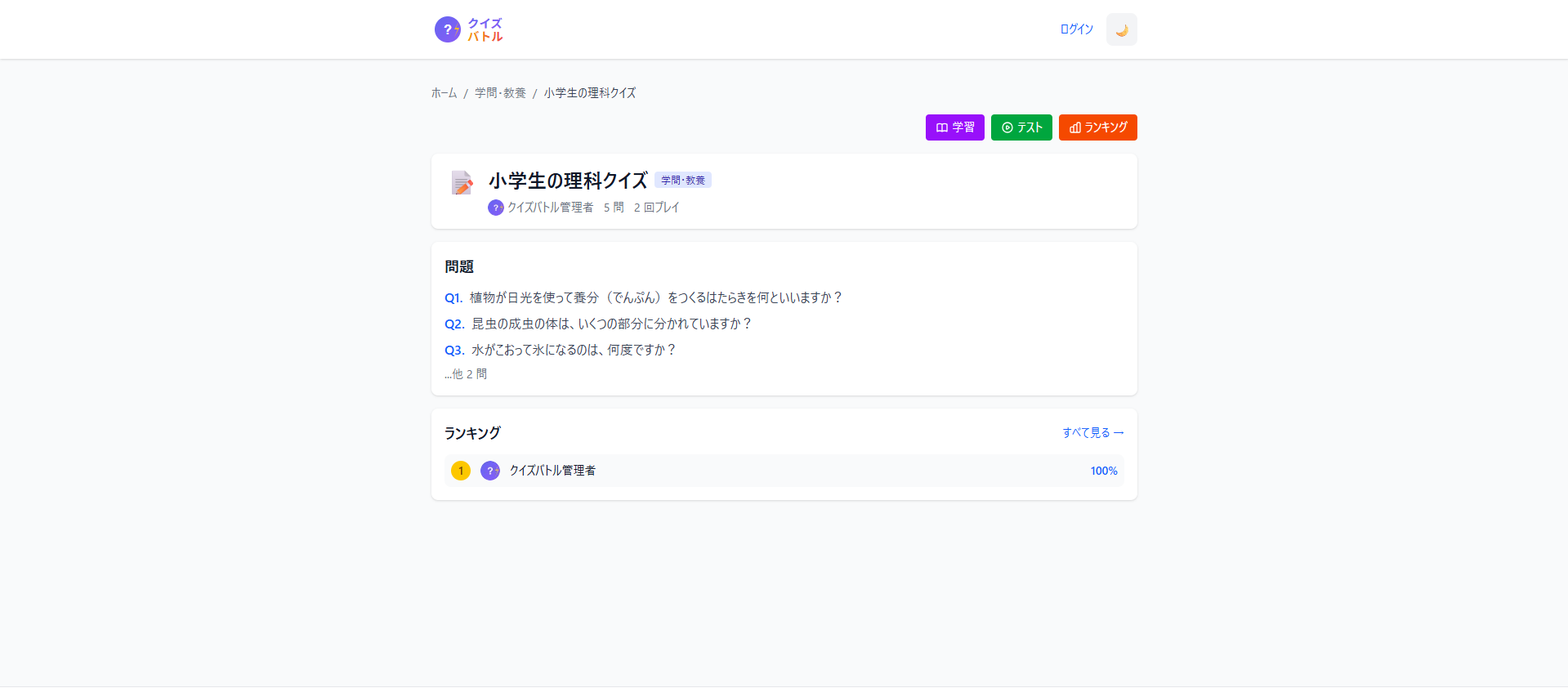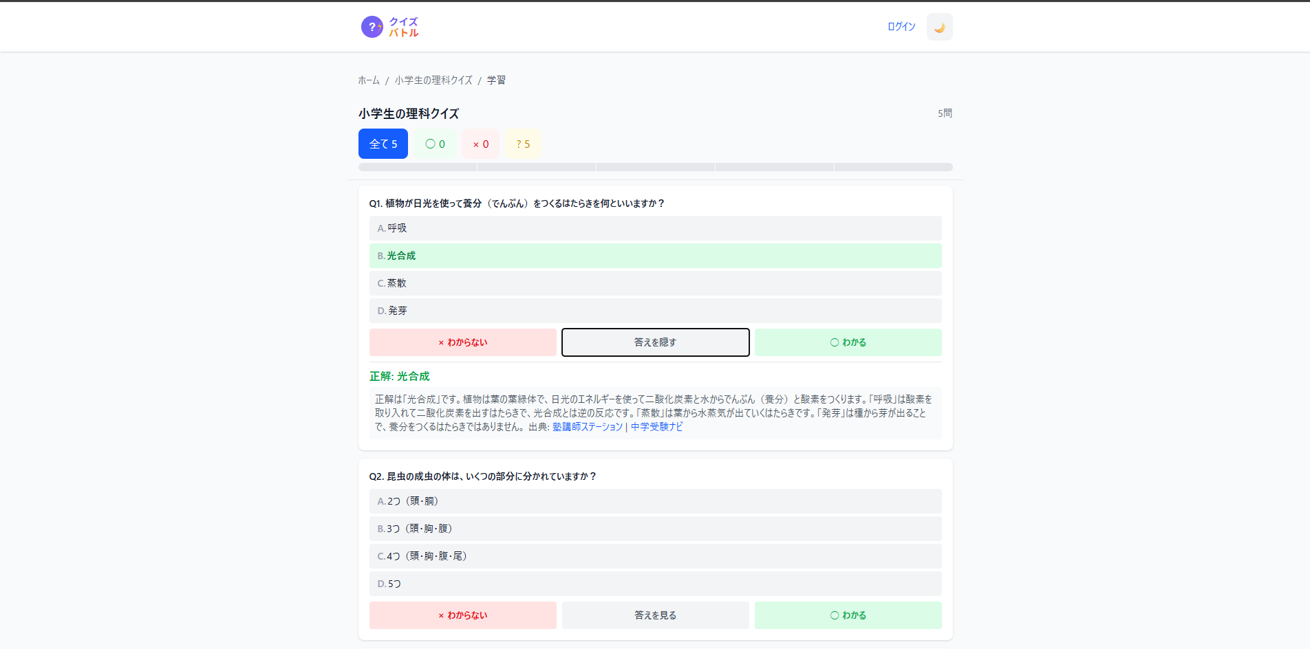 クイズバトル Webサービス https://quiz-battle.net クリエイター クイズバトル さんのプロフィール リリース 2026/01/05 ジャンル 生活、ビジネス、おもしろ、ゲーム 無料でクイズを作成・共有・対戦できるWebアプリ。AIによる問題自動生成、ランキング機能、フラッシュカード学習モードなど充実の機能。 評価・コメント コメントまたは評価はまだありません。 コメント・評価をするにはログインしてください Tweet fb 評価 Good! Bad... コメント 1000文字以内 キャンセル 通報内容 1000文字以内 キャンセル